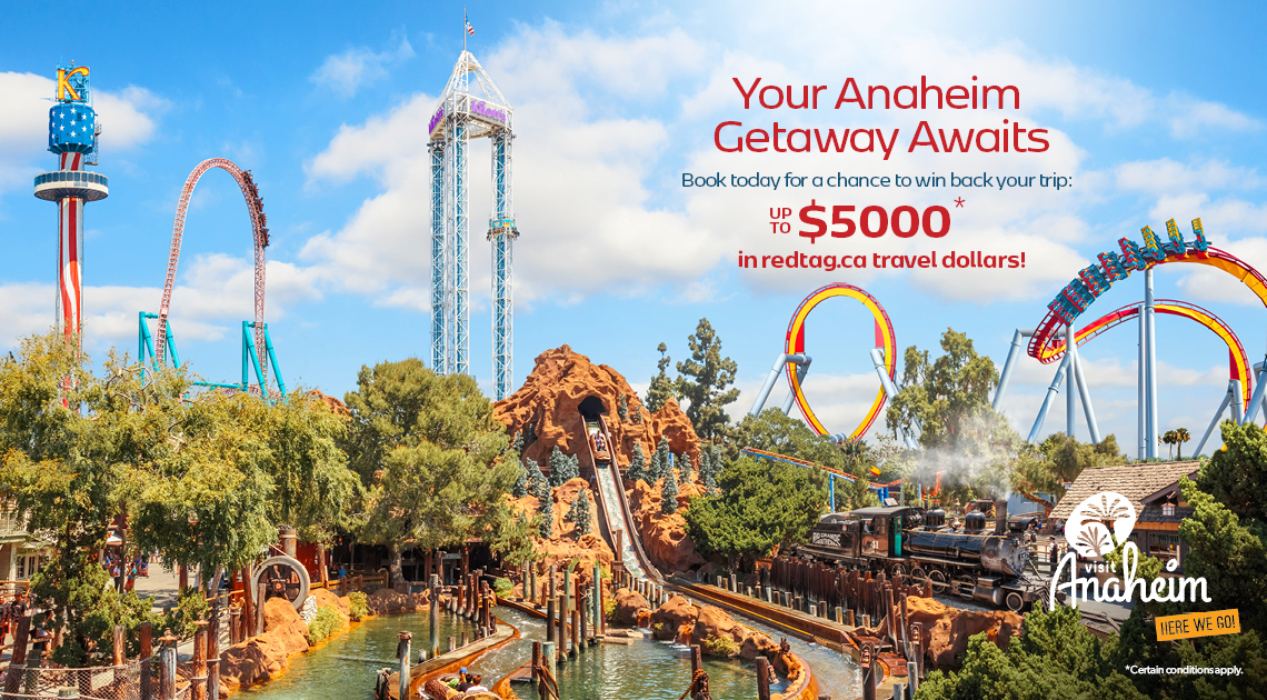 i) Booking Entries: Book your Anaheim vacation, flight, hotel or flight and hotel bundle with redtag.ca between September 9, 2024 to September 15, 2024 for travel between September 9th to December 31st, 2024, and your booking will automatically be entered for a chance to win the cost of your trip back in a redtag.ca future travel voucher, up to a maximum of $5,000 CAD. Does not apply to group bookings. Bookings must be paid in full to qualify. This promotion is valid for all Canadian residents of majority age.