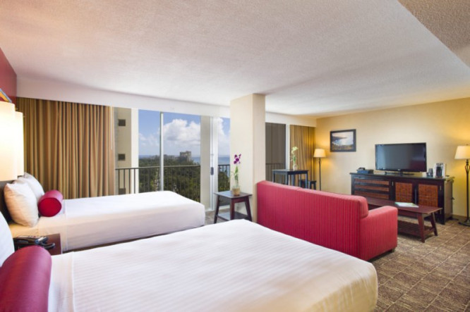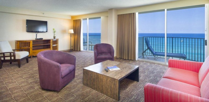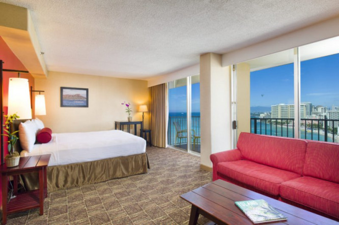All guest rooms at Aston Waikiki Beach Hotel are styled for comfort and convenience, and include mini-refrigerators and large flat-panel TVs. Most rooms have full or partial ocean views, and some offer private lanais where you can relax and enjoy the scenery.