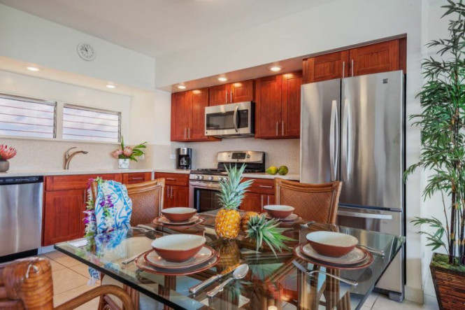This Waikiki condo adjoins Outrigger Reef on the Beach hotel with beachfront Shore Bird Restaurant and Kani Ka Pila Grille’s nightly Hawaiian slack-key guitar performances. A superb vacation rental alternative to Waikiki hotels, Outrigger Waikiki Shore makes living on the beach pure paradise.