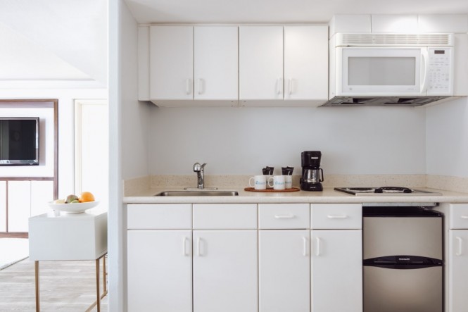 Our property consists of two buildings – our main tower and a 2-story building that holds 10 beautiful studio suites with kitchenettes. The two buildings share a sun-filled, easy-going pool area with a 70-foot swimming pool and outdoor Jacuzzi.