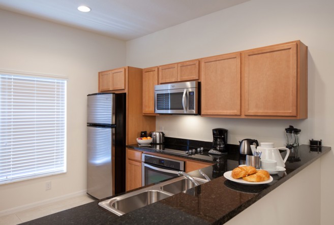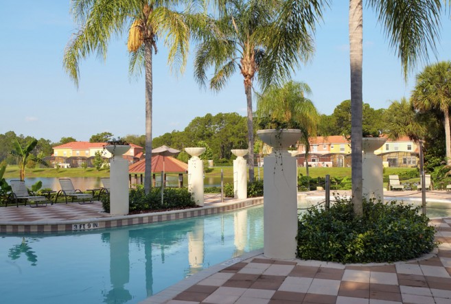 Encantada Resort is a private community of recently built 2, and 3 bedroom townhouses. Resort facilities include two outdoor heated swimming pools, two out door jacuzzi's, playground, fishing dock, bar, restaurant, game room, fitness center, and much more. We are also located just 6 miles from Walt Disney World. Each townhome has a full kitchen, washer/dryer, living room, dining room, bedrooms upstairs and a screened in lani.