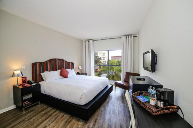 Mona Lisa Suite Hotel in Kissimmee is Orlando's newest luxury all-suite boutique hotel featuring 240 spacious one and two-bedroom suites, complete with sleek designer kitchens, king sized beds with Egyptian cotton linens, LCD flat screen TVs, and balconies overlooking our vanishing-edge pool or Florida landscape. The property is centrally located in the award-winning village of Celebration and minutes from the gates of the Walt Disney World theme parks. With transportation to Celebration Town Center and all major area theme parks, our location is as extraordinary as our personalized service and guest suites.
