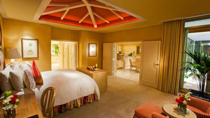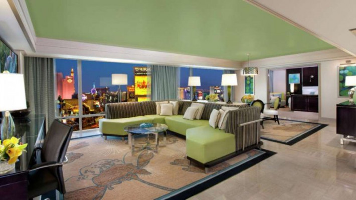 The resorts and casinos of MGM MIRAGE are some of the most famous in the world, widely credited for establishing a new generation of excitement in Las Vegas! The MGM Mirage is a 100 acre resort offering 3,044 rooms and suites, nine restaurants, pools with waterslides and waterfalls, full spa, salon, shopping area, a 54 foot erupting volcano in the front of the resort, the Secret Garden exhibit with Royal White Tigers, an Asian Elephant, a panther and a snow leopard. They have a Dolphin Habitat with Atlantic Bottlenose Dolphins, a 20,000 gallon aquarium with three different kinds of sharks, an indoor rainforest, pools with waterslides and waterfalls and a free shuttle to Treasure Island. It also has a 100,000 square foot casino and sports book with 2,245 slots and 118 tables.