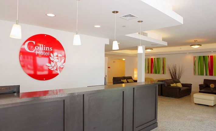 Collins Hotel was officially opened to the public in August of 2011 after undergoing a 12 month renovation. Collins Hotel offers visitors to Miami Beach a modern hotel room with contemporary decoration, where everything is brand new. Enjoy plush beds, flat screen plasma TVs and high speed wireless internet, all at an affordable price. Located on Collins Avenue between 66th and 67th streets.