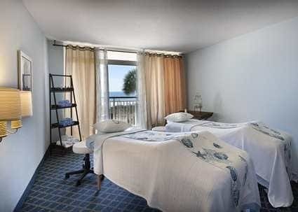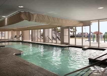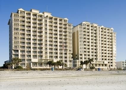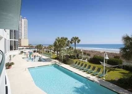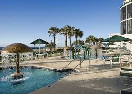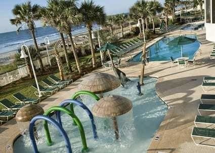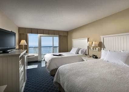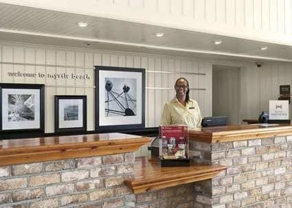 Welcome to the Hampton Inn & Suites Myrtle Beach-Oceanfront hotel, located directly on the beach. Our Myrtle Beach hotel is located just two miles from Myrtle Beach Jetport and minutes from local attractions like Market Common, Broadway at the Beach, Coastal Grande Mall, and Myrtle Beach's new 'Sky Wheel'. Our two-story lobby with pine floors offers beautiful Atlantic Ocean views. Start your day right with Hampton's free hot breakfast(R) and enjoy views of the ocean. If you're on the go, be sure to grab one of our Hampton's On the Run(R) Breakfast Bags, available Monday through Friday. Enjoy a gourmet blend of coffee available every day, all day. Sunbathe and swim in one of our two lazy rivers, three outdoor and four indoor pools at our Myrtle Beach oceanfront hotel. Our beachfront playground is great for the little ones in your family.