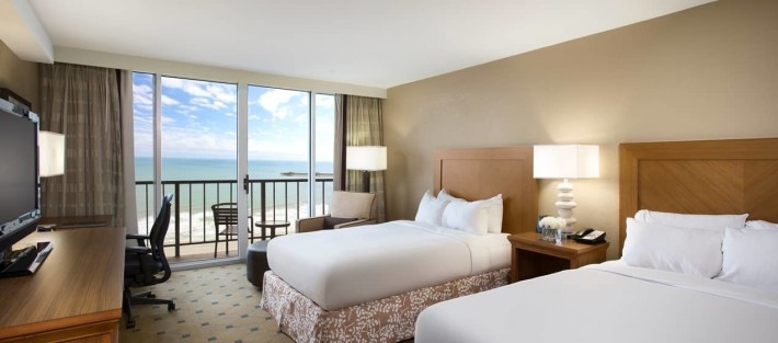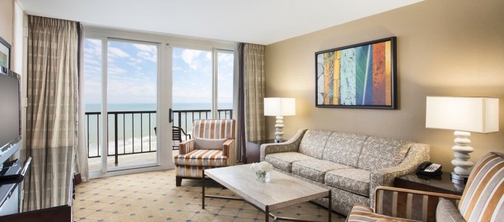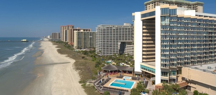 Hilton Myrtle Beach Resort is located at the north end of Myrtle Beach, SC. Our hotel offers luxurious accommodations featuring private balconies with ocean views. Hilton Myrtle Beach Resort also features golf, tennis, and a conference center perfect for groups of all sizes. All guests can enjoy access to Splash Water Park located at our neighboring sister property Kingston Plantation Resort.