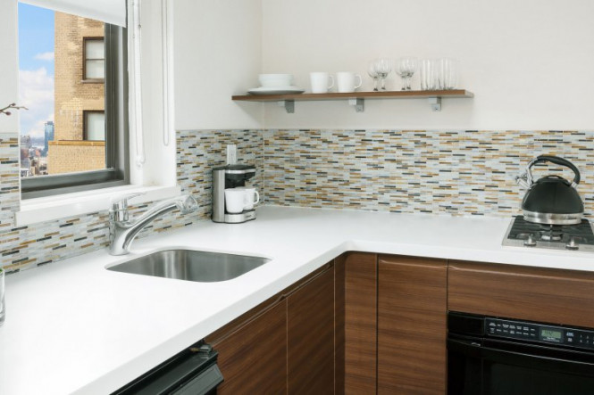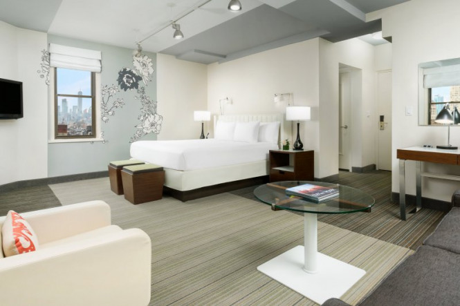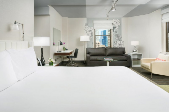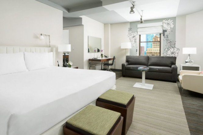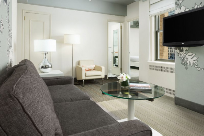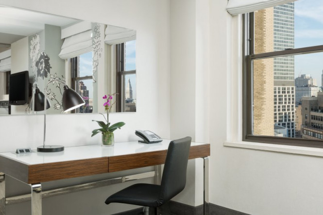 An upscale hotel with an airy, elegant lobby in Midtown (near the border with Chelsea), this property is less than a block from Penn Station and Madison Square Garden. The lavish guest rooms have flat-screen TVs, iPod docking stations and WiFi (surcharge). Studios add a kitchenette, while the 1- and 2-bedroom suites add full kitchens and separate living areas. Some suites feature an additional bathroom and/or terrace. Shared amenities include an on-site fitness center, self-service laundry and a contemporary American restaurant. There is a complimentary wine hour for guests.