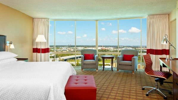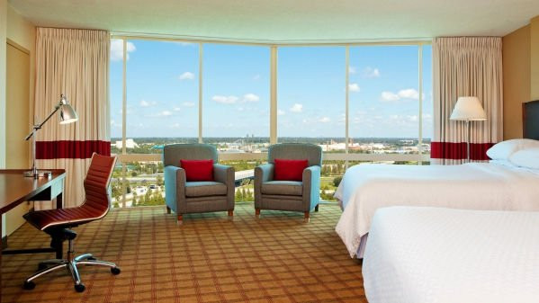 Situated in the heart of Central Florida on infamous International Drive, the Four Points by Sheraton Orlando hotel near Universal Orlando(R) Resort offers modern accommodations, upgraded amenities and an ideal location near the area's top attractions. Designed for comfort and convenience, this 100% smoke-free hotel features 301 contemporary guest rooms, complete with complimentary Wi-Fi, 40" flat-screen TVs, white crisp bedding, a coffee maker, soothing bath amenities and more. Guests can also enjoy premium amenities, including on-site dining at Tropical Palms Restaurant, an outdoor pool and fire pit, a 24-hour fitness center, 6,500 square feet of meeting space, business center services, a complimentary shuttle service to select theme parks, scheduled activities, a game room, and other conveniences. This Orlando hotel on International Drive is also located near major hotspots, like Universal Studios(R) Florida and Islands of Adventure(R), SeaWorld(R) Orlando, Walt Disney World(R) Resort and more.