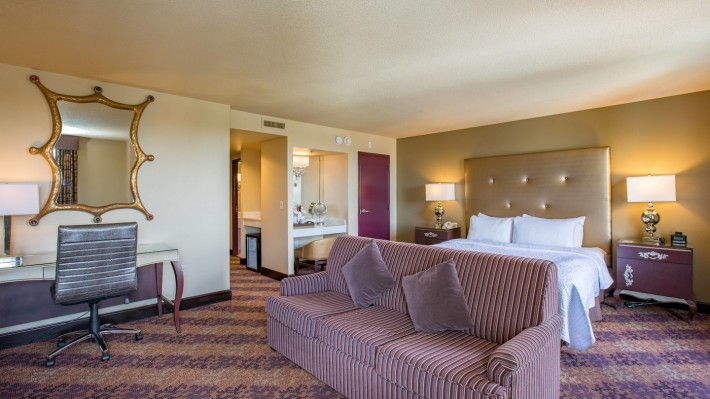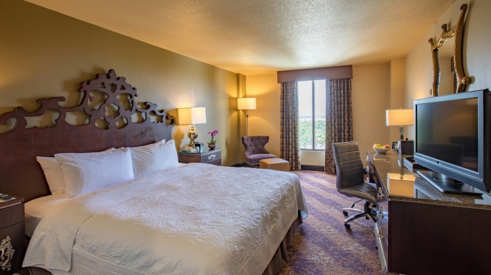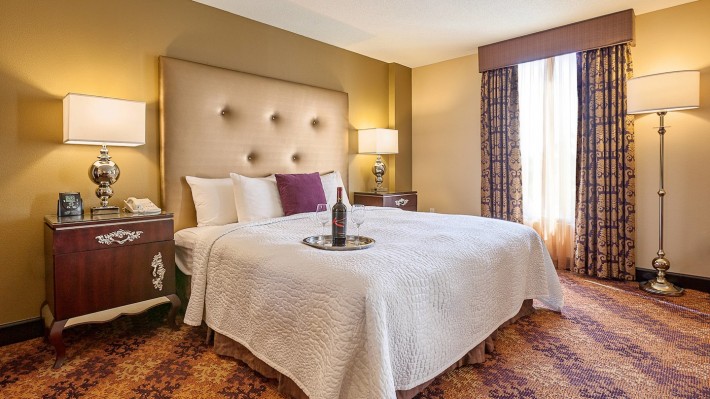 The hotel's location also makes business in Orlando, Florida a pleasure. The Orange County Convention Center is just two miles away. Guests can rely on the free Wi-Fi access and Roomlinx technology to stay connected. When you stay at The Castle, you can have fun without ever leaving the hotel. Orlando weather and a heated, outdoor pool mean you can make a splash year-round. Kids love the exciting castle scavenger hunt, arcade and dive-in movies.