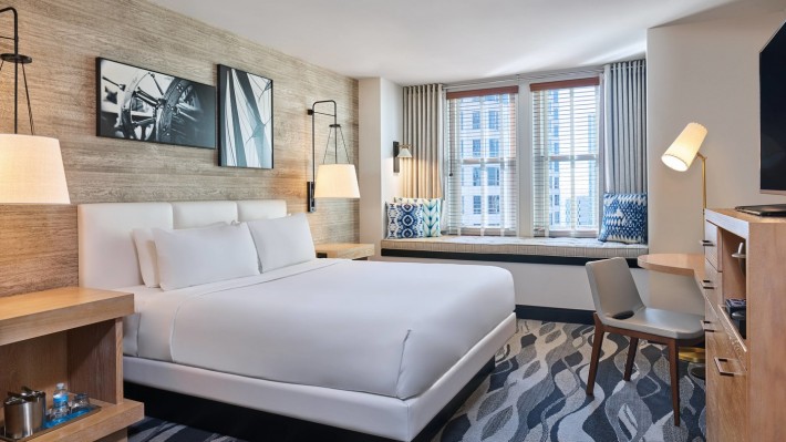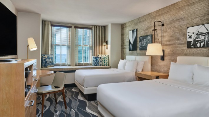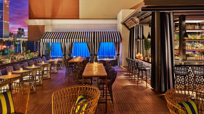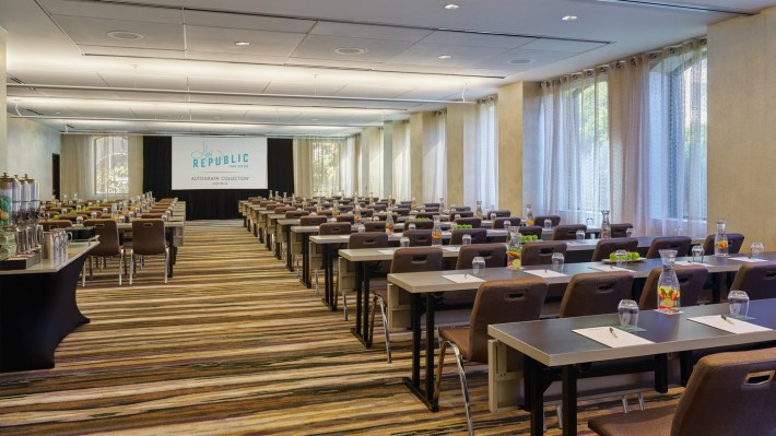 Hotel Republic San Diego, Autograph Collection takes design cues from San Diego, California's dynamic oceanside location, with lofty ceilings and chandeliers made from reclaimed driftwood. Coastal inspiration continues in our downtown San Diego hotel's guest rooms, furnished in contemporary neutral tones accented by blue tie-dyed pillows. With a convenient address in the heart of the city’s social hub, travelers enjoy quick access to the historic 16-block Gaslamp Quarter, trendy Little Italy, the San Diego Bay, the ballpark and the San Diego Convention Center. All of this is taken in from our hotel’s stylish rooftop lounge, where craft cocktails and light fare pair with breathtaking city and ocean views.