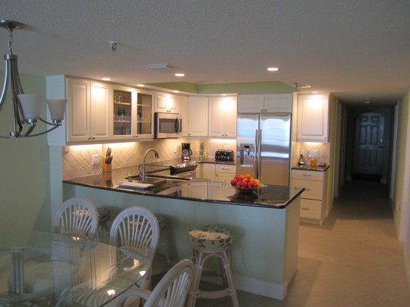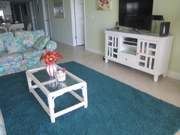 It is located on the third floor and is well appointed. This completely refurnished unit has a pastel and tropical look with all the comforts of home. From washer & dryer to baby bed and high chair -- this condo has everything you need for a comfortable vacation.