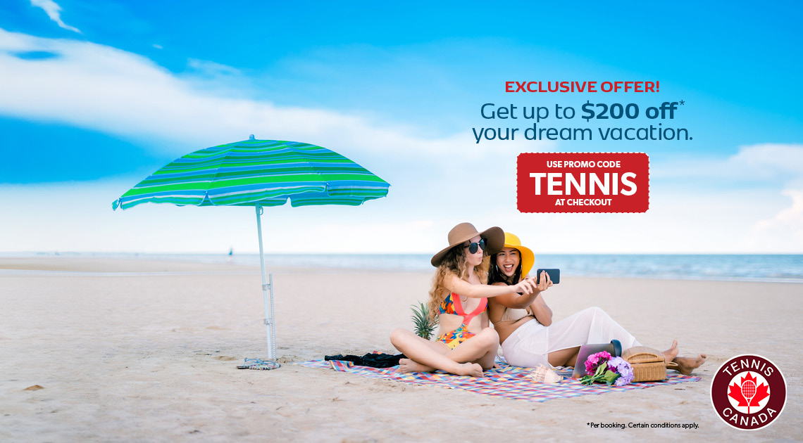 Promo code TENNIS is applicable on new pre-packaged vacation bookings made online between February 2, 2026 and December 31, 2026, for travel from February 3, 2026 to December 31, 2026. $50 discount is applicable to bookings with a minimum purchase price of $799 - $1298 per person (before taxes & fees), unless otherwise stipulated on your promo code. Eligible on double, triple, and quadruple occupancy bookings. (value of $50). Single occupancy bookings with a minimum purchase price of $799 - $1298 will receive a $25 discount per booking unless otherwise stipulated. $100 discount is applicable to bookings with a minimum purchase price of $1299 to $1898 per person (before taxes & fees), unless otherwise stipulated on your promo code. Eligible on double, triple, and quadruple occupancy bookings. One promo code per booking (value of $100). Single occupancy bookings with a minimum purchase price of $1299 - $1898 will receive a $50 discount per booking. $150 discount is applicable to bookings with a minimum purchase price of $1899 to $5998 per person (before taxes & fees), unless otherwise stipulated on your promo code. Eligible on double, triple, and quadruple occupancy bookings. One promo code per booking (value of $150).Single occupancy bookings with a minimum purchase price of $1899 - $5998 will receive a $75 discount per booking. $200 discount is applicable to bookings with a minimum purchase price of $5999 or higher per person (before taxes & fees), unless otherwise stipulated on your promo code. Eligible on double, triple, and quadruple occupancy bookings. One promo code per booking (value of $200). Single occupancy bookings with a minimum purchase price of $5999 or higher will receive a $100 discount per booking. Promo code cannot be exchanged for any cash value and must be entered or provided at the time of booking. The promo code discount amount is non-negotiable. Not combinable with any other discounts or promo codes. Not applicable to group bookings. The promo code offer is capacity controlled and can be changed or withdrawn at any time without notice. Promo Code must be provided at the time of booking.